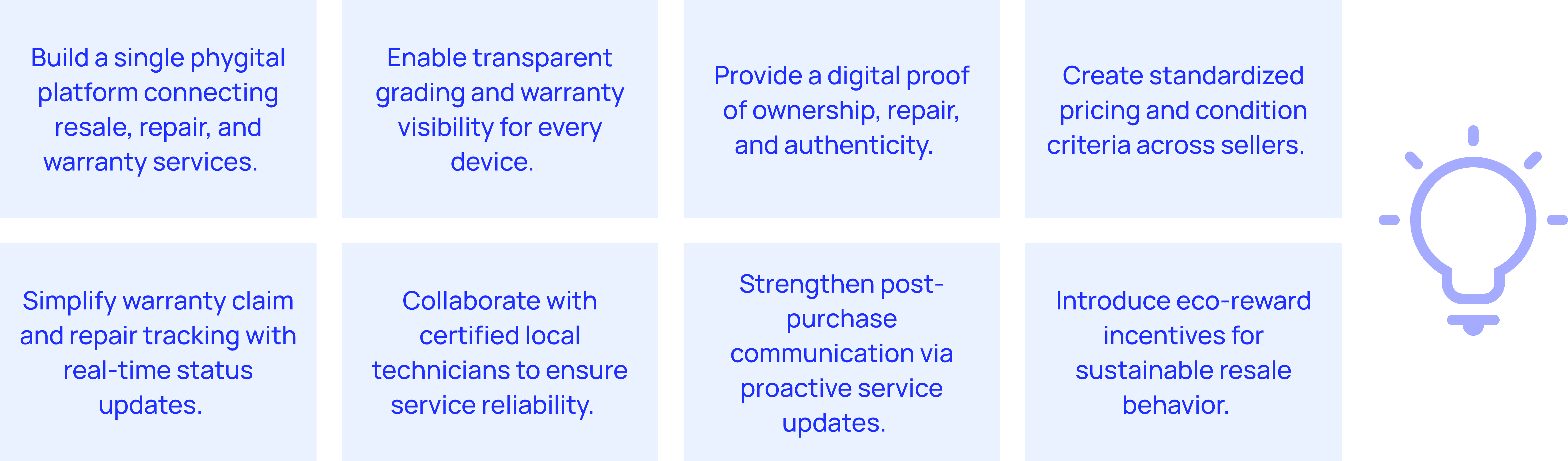 This research established the foundation for Foxilynch: a phygital, trust-centered platform with transparent device passports, verifiable warranties, and evidence-backed repairs.
