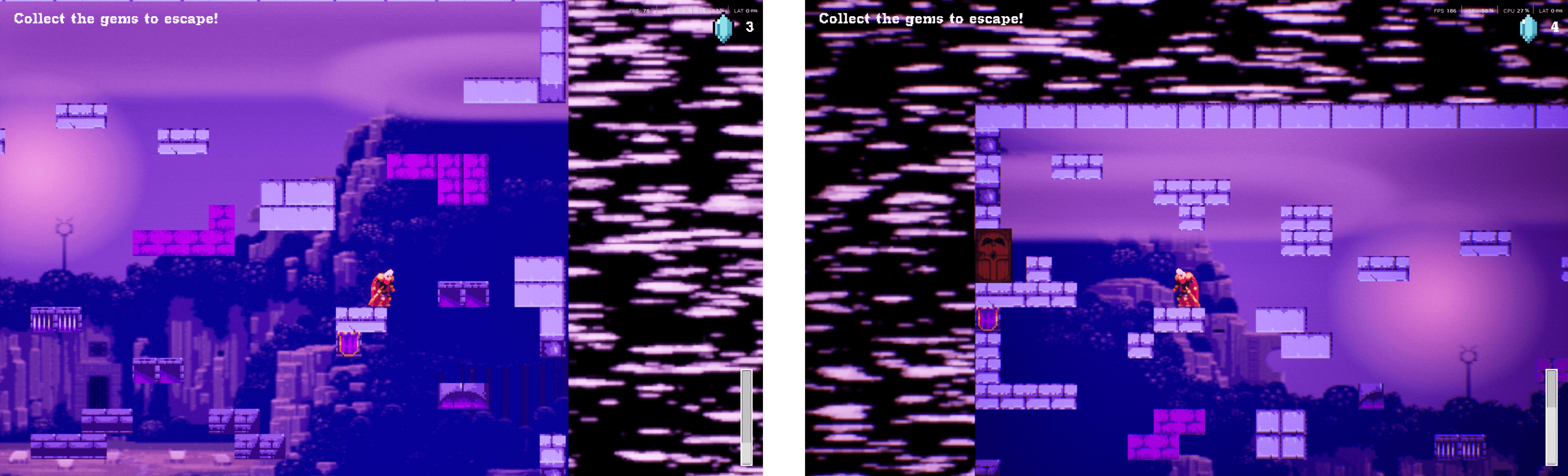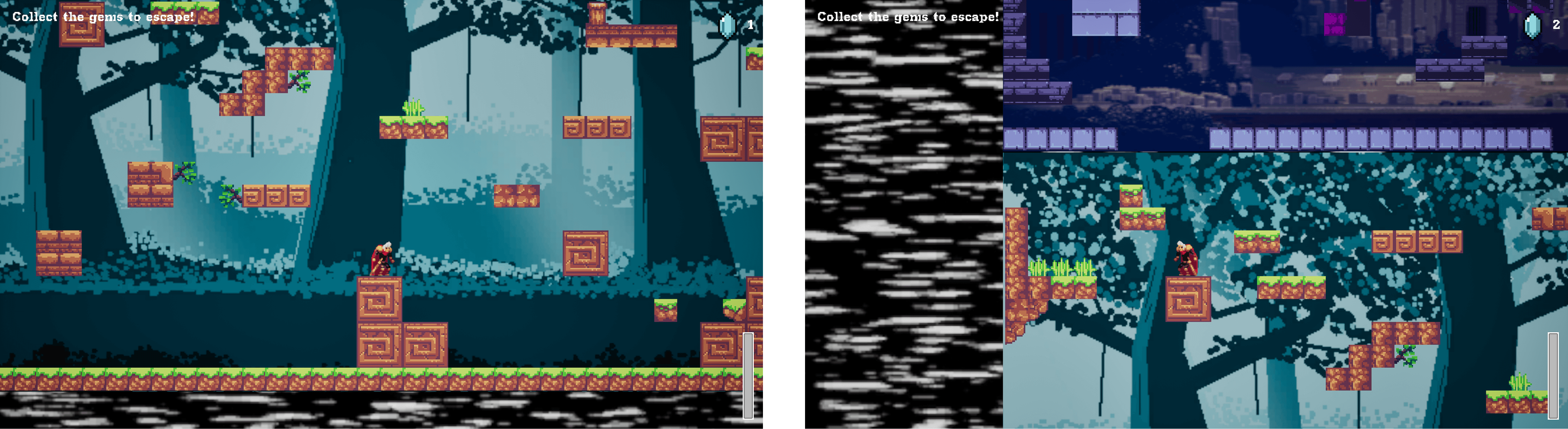 Each gem collected increases instability within the world. Visual distortion intensifies, clarity is reduced, and movement becomes harder to read. Progress is irreversible, once a gem is collected, the game permanently shifts into a more punishing state.